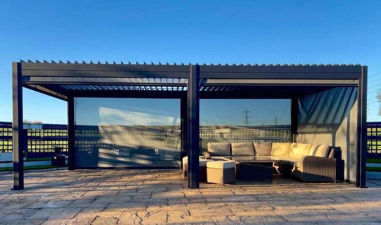 6m x 3m Pergola with 2 3m privacy blinds installed.