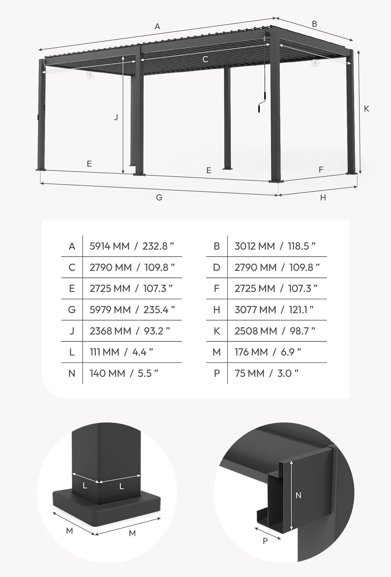 6m x 3m Pergola with 2 3m privacy blinds installed.